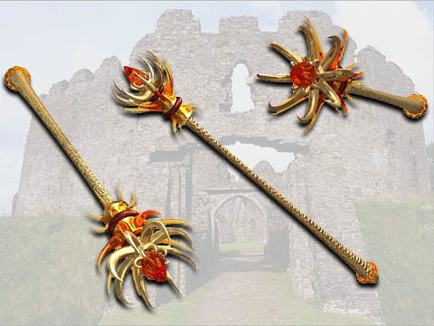 Вероятность срабатывания: 70% Требуется минимальное: • Интеллект: 50 • Уровень: 9 • Мастерство владения магическими посохами: 3 • Мана: 80 • Мудрость: 50 Действует на: • Подавление защиты от магии: +2 • Мф. мощности магии стихий: +15 • Интеллект: +6 • Мастерство владения магией стихий: +1 • Защита от урона: +50 • Уровень жизни (HP): +60 • Уменьшение расхода маны (%): +3 Свойства предмета: • Урон: 1 - 20 • Двуручное оружие • Зоны блокирования: + Особенности: • Огненные атаки: Всегда